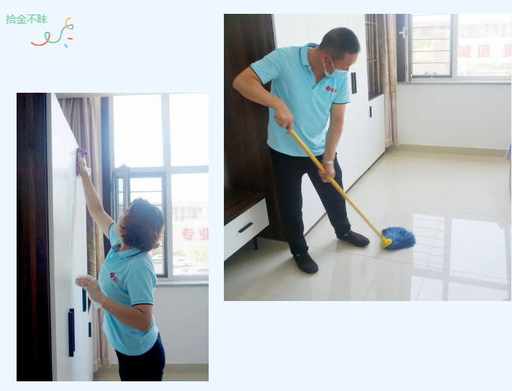 △烏蘭美康養(yǎng)院的生活助理團(tuán)隊(duì)正在為李恩國爺爺打掃房間衛(wèi)生